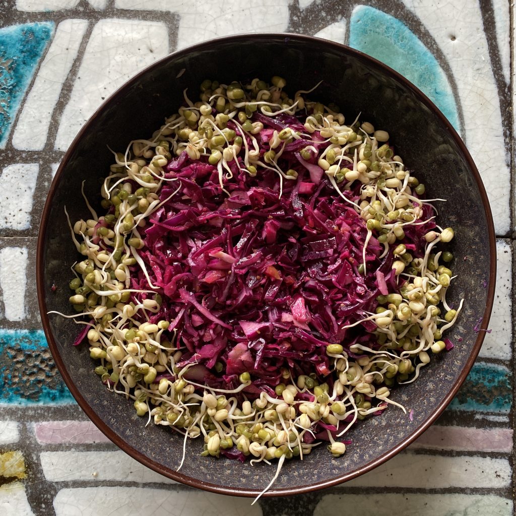 Pour améliorer la digestibilité des crudités, il sera conseiller de les faire mariner (3-4h ou plus, dans un contenant fermé et placé au réfrigérateur) avec un peu de jus de citron ou du vinaigre de cidre (si possible bio et non pasteurisé), de l’huile olive et/ou une huile riche en oméga 3, des épices digestives, un peu de fleur de sel ou un filet de sauce tamari. Cette marinade va agir comme une « cuisson » avec l’acidité du jus de citron.